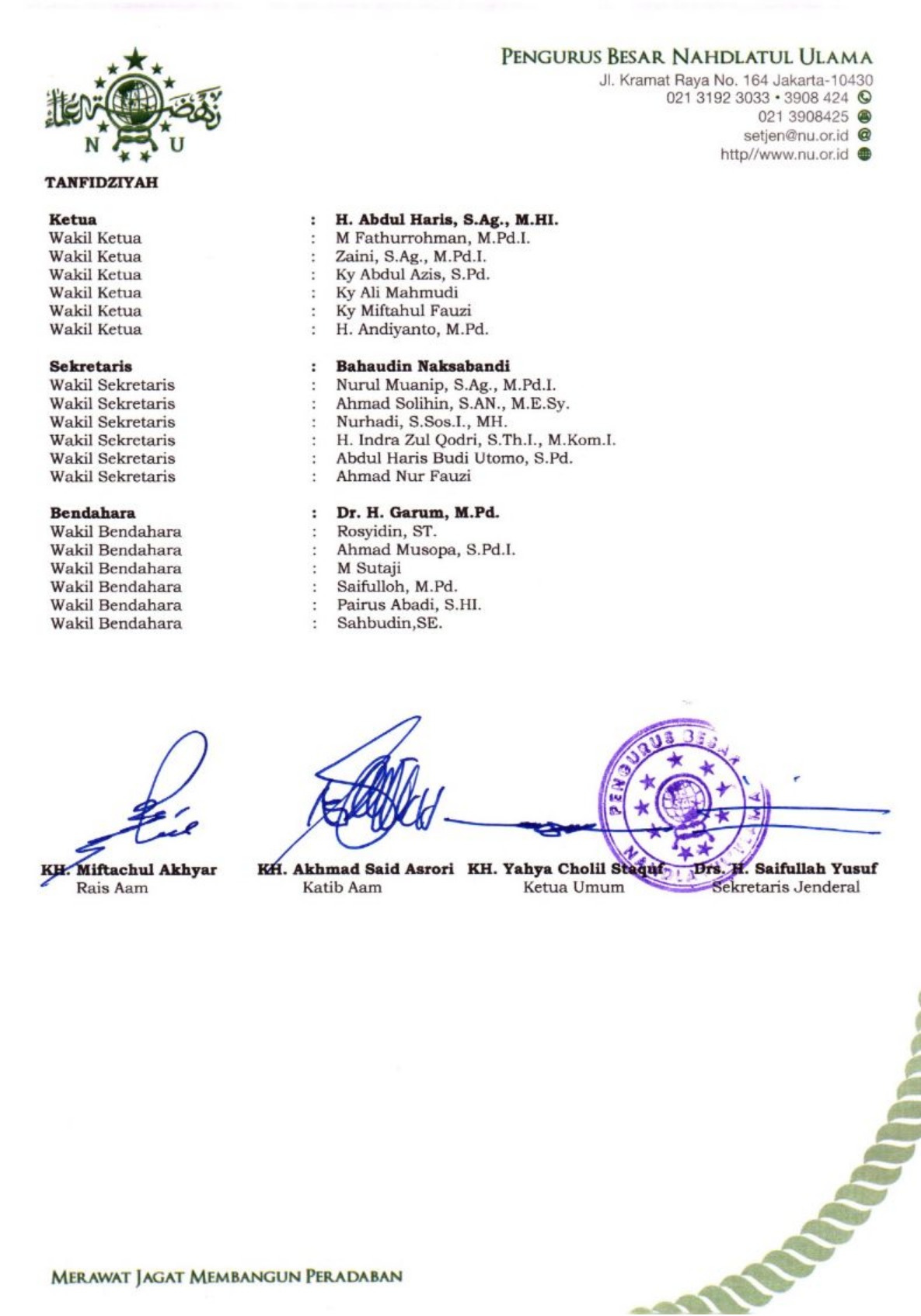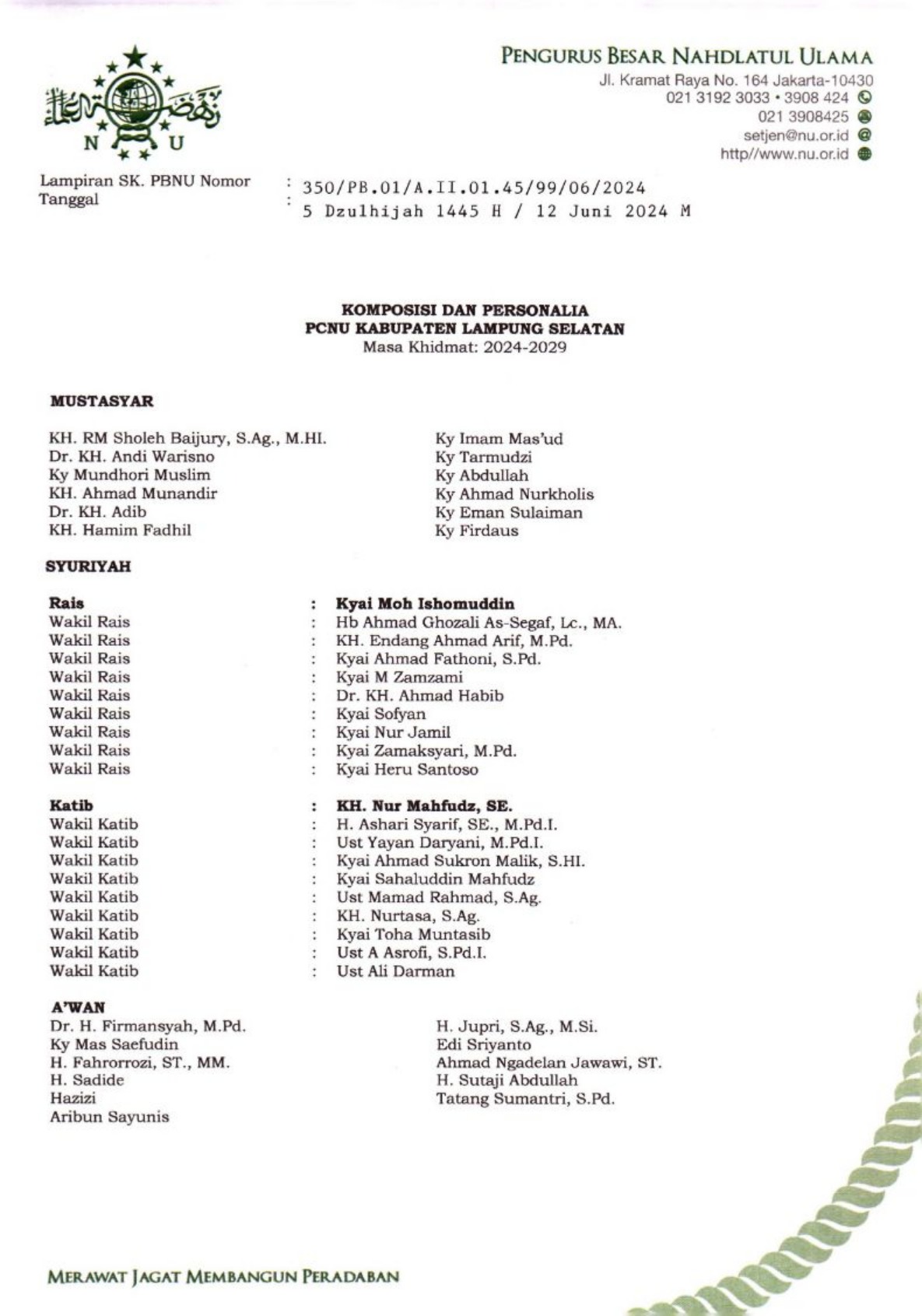 SK Pengurus PCNU Kabupaten Banjarbaru Periode 2024-2029